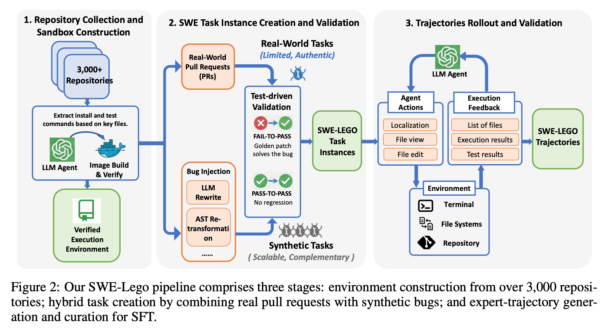 - SWE-Lego dataset:32k high quality task instances and 18k validated trajectories (real+synthetic data)